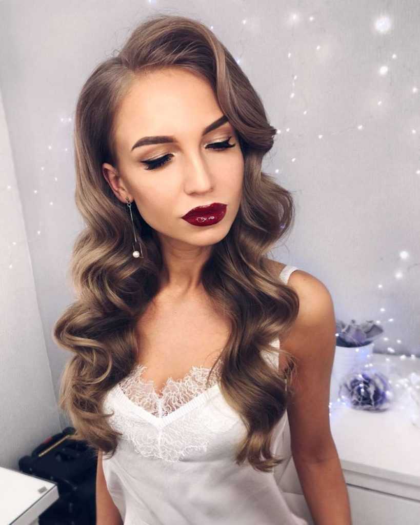 Голливудские волны – буквально неумирающая классика, которая всегда будет оставаться в тренде. Это одна из самых элегантных и роскошных легких причесок на Новый год на длинные локоны. Подобная укладка лучше всего подойдет для строгого и лаконичного наряда.