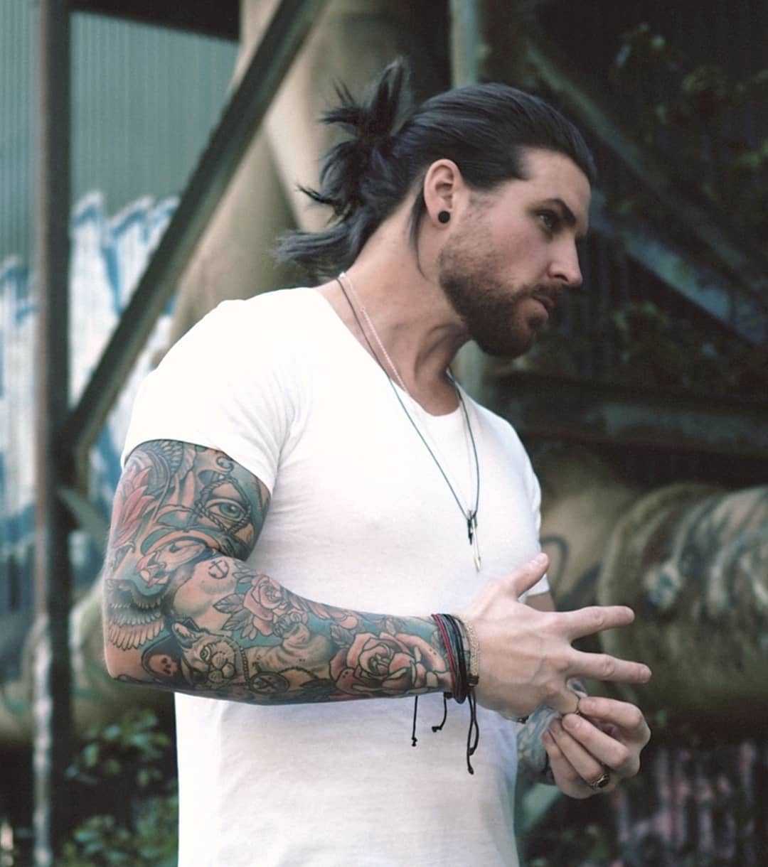 Пучок или man bun – практичная и удобная прическа для длинноволосых мужчин с бородой. При этом в узел можно собирать все волосы, а можно только часть. Для этого нужно отделить волосы сверху и закрепить их на затылке с помощью резинки. Внизу останутся распущенные волосы. Это самурайский вариант man bun, который также был популярен у викингов.