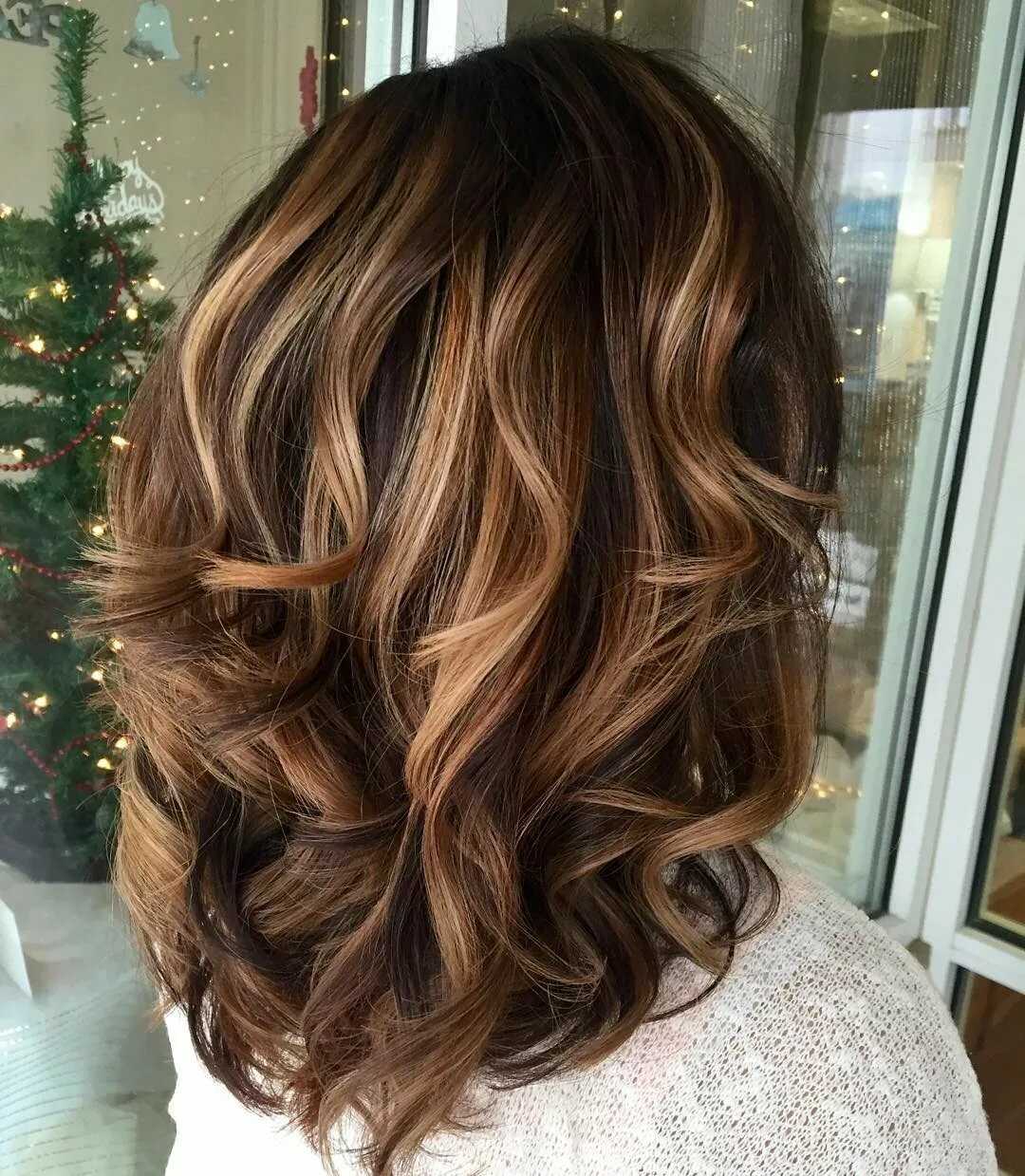 Не менее интересно будет смотреться и топовое брондирование с использованием теплых тонов: кофейного, золотого, шоколадного. Также для сложного окрашивания волос на средние волосы подойдут омбре, балаяж и шатуш.