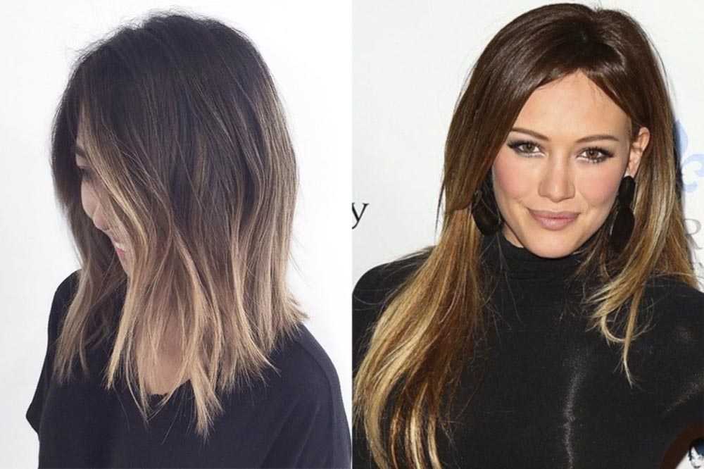 Обладательницам светлых волос можно присмотреться к молочно-перламутровому, золотистому оттенку. Также неплохо будет смотреться пшеничный. Блондинки могут выбирать среди медового, орехового, карамельного, жемчужного и янтарного оттенков.Брюнеткам и шатенкам подойдет янтарная, коньячная и медовая палитра красок. Черные пряди выглядят эффектно, если будет выполнен аккуратный переход между оттенками. Брюнеткам также потребуется предварительно осветлить волосы, иначе эффект будет выглядеть ненатурально. Рыжеволосые красавицы, для которых рыжий – естественный цвет волос, могут поэкспериментировать с янтарным, золотистым и пшеничным оттенком.