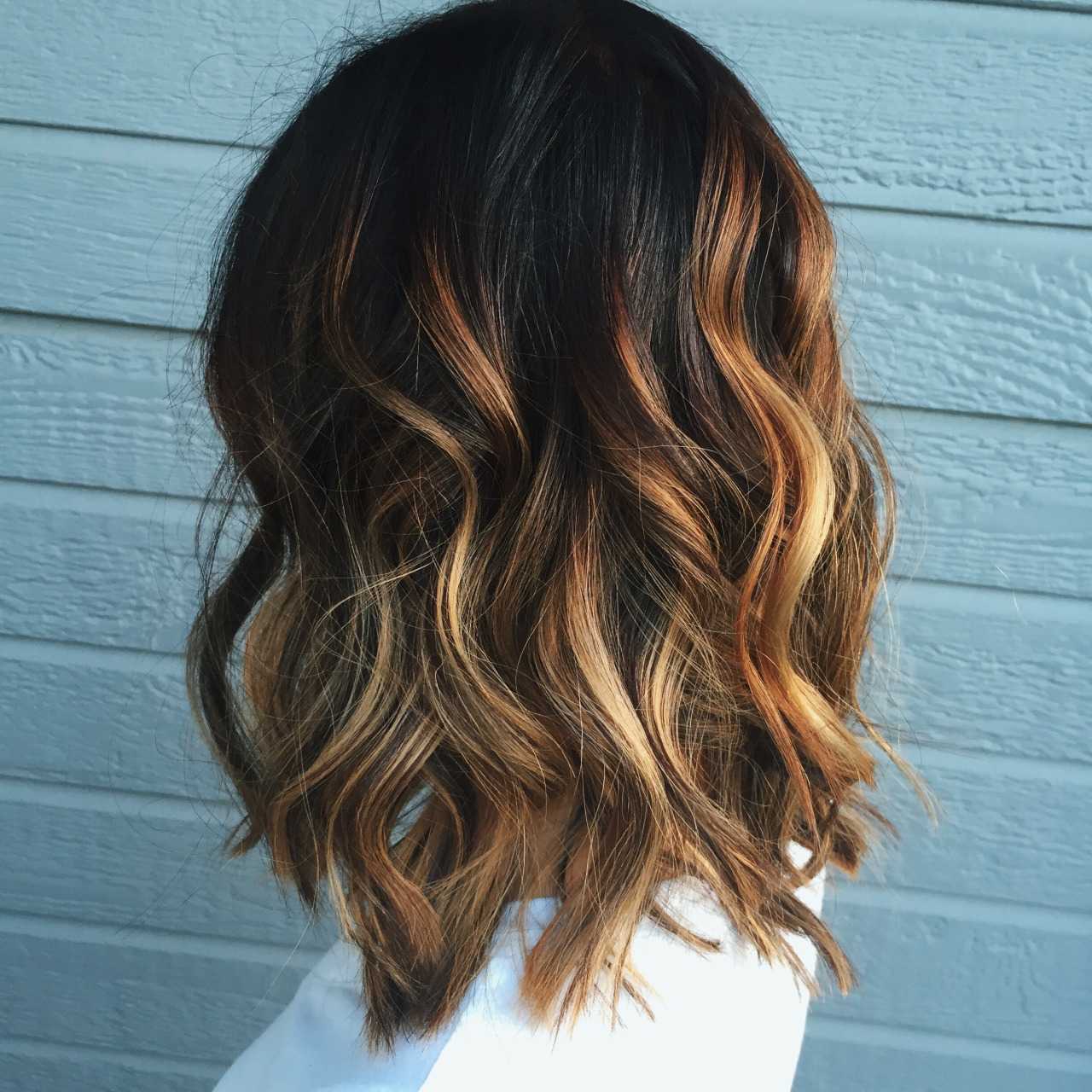 Медовый тон в сочетании с медными прядями на тёмных волосах придаст изюминку короткой причёске, которая требует к себе внимание. Девушки, не любящие долго укладывать стрижку и часто посещать парикмахера с перекрашиванием волос, просто обязаны выбрать медный омбре