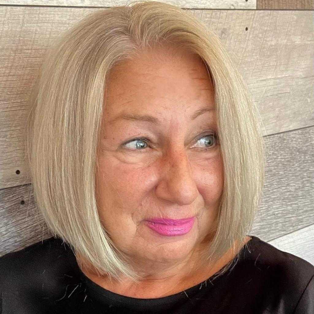 - Многоликий боб. Подходит для круглолицых после 50 лет. Идеально так стричься, если волосы не отличаются густотой и плотностью. Получится небольшой объем, который будет выглядеть привлекательно даже в случае с округлыми скулами и щеками.