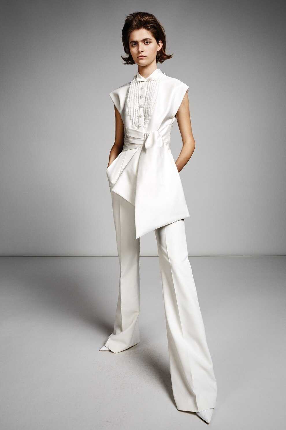 Свадебные бренды для своих коллекций использовали разные варианты украшений – у Monique Lhuillier прослеживается любовь к милым атласным бантикам, Georges Hobeika делает ставку на стильные тиары в греческом стиле, а ливанский дизайнер Рим Акра дополняет образы конструкциями из искусственных цветов.