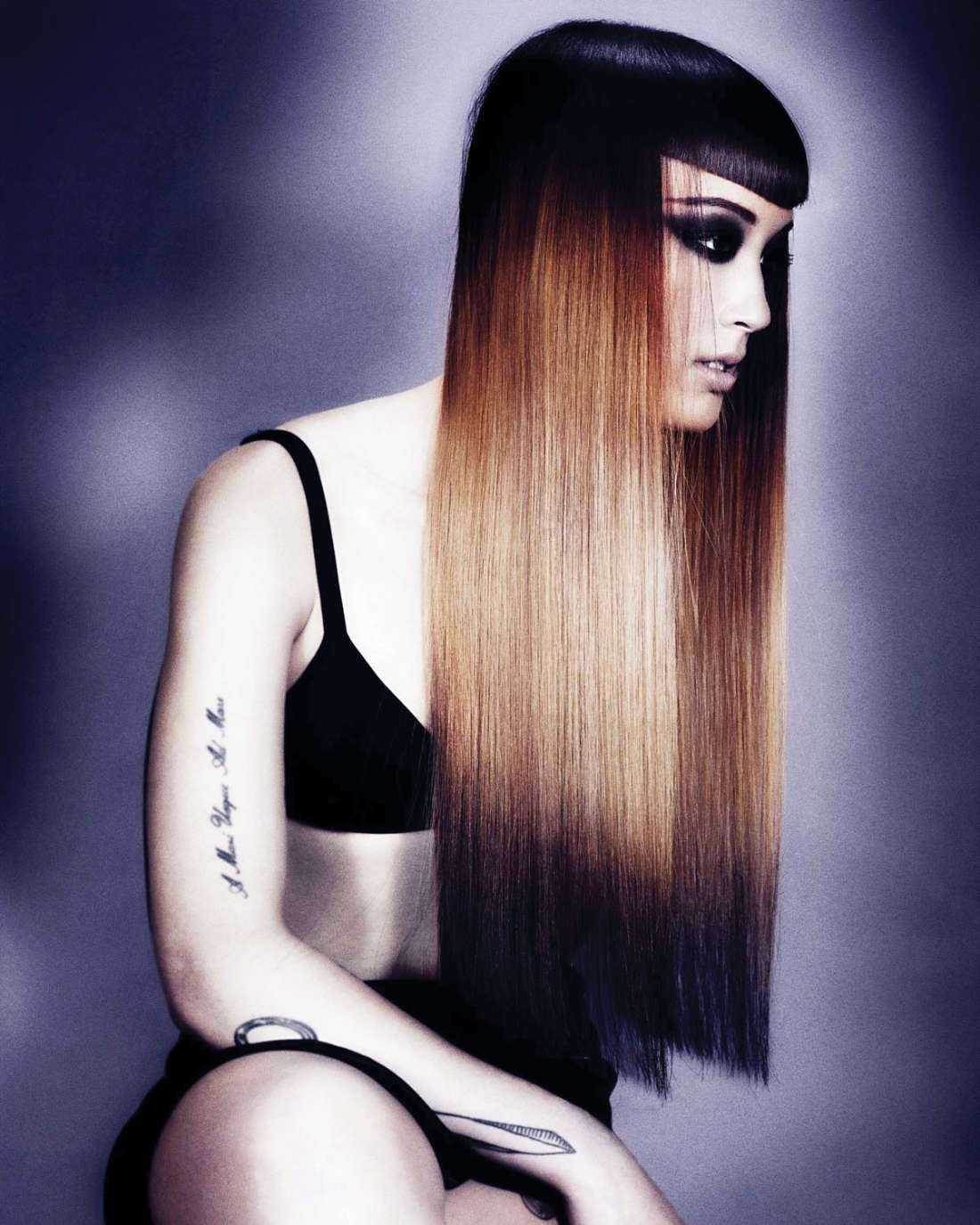 Особенно актуально на длинных волосах смотрится колорирование. При выборе данной техники есть возможность поэкспериментировать с различными акцентами. Это может быть акцент на кончики или наоборот на корни. Кроме того, можно сделать акцент на челке
