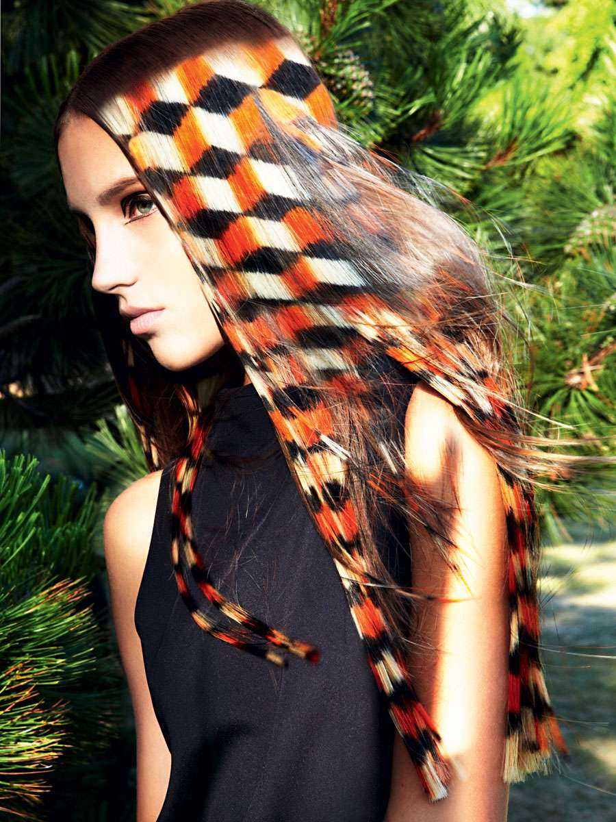 Смелые, яркие девушки всегда жаждут экспериментов с образом. Поэтому если вы обладательница длинных волос и не боитесь быть в центре внимания, то предлагаем попробовать сделать смелое трафаретное окрашивание. Оно предполагает нанесение разных рисунков. Это может быть животный принт или геометрический. Все зависит от ваших личных предпочтений