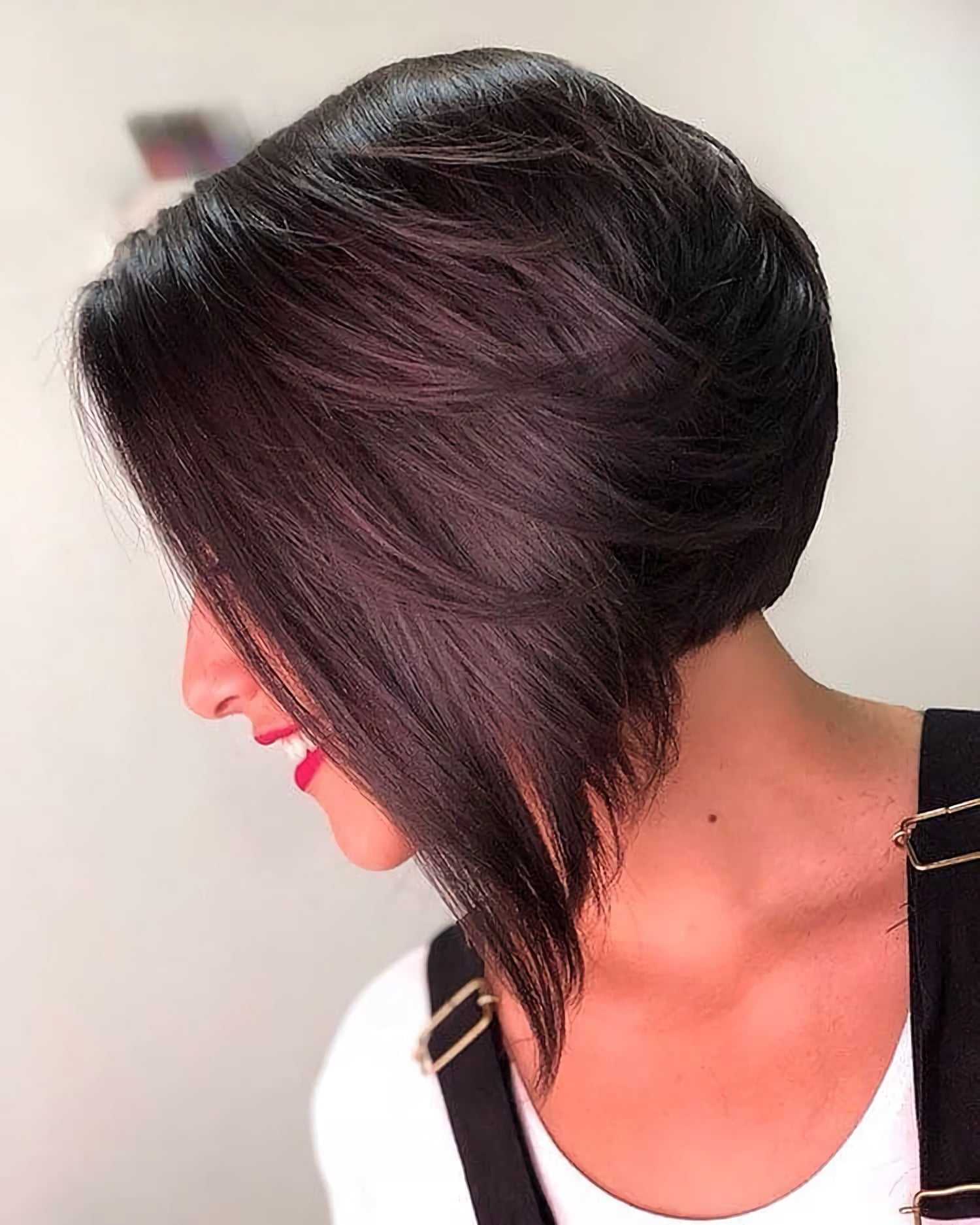 Асимметричный или ровный боб выглядит одинаково хорошо на любых волосах средней длины. Его носят как с челкой, так и без.