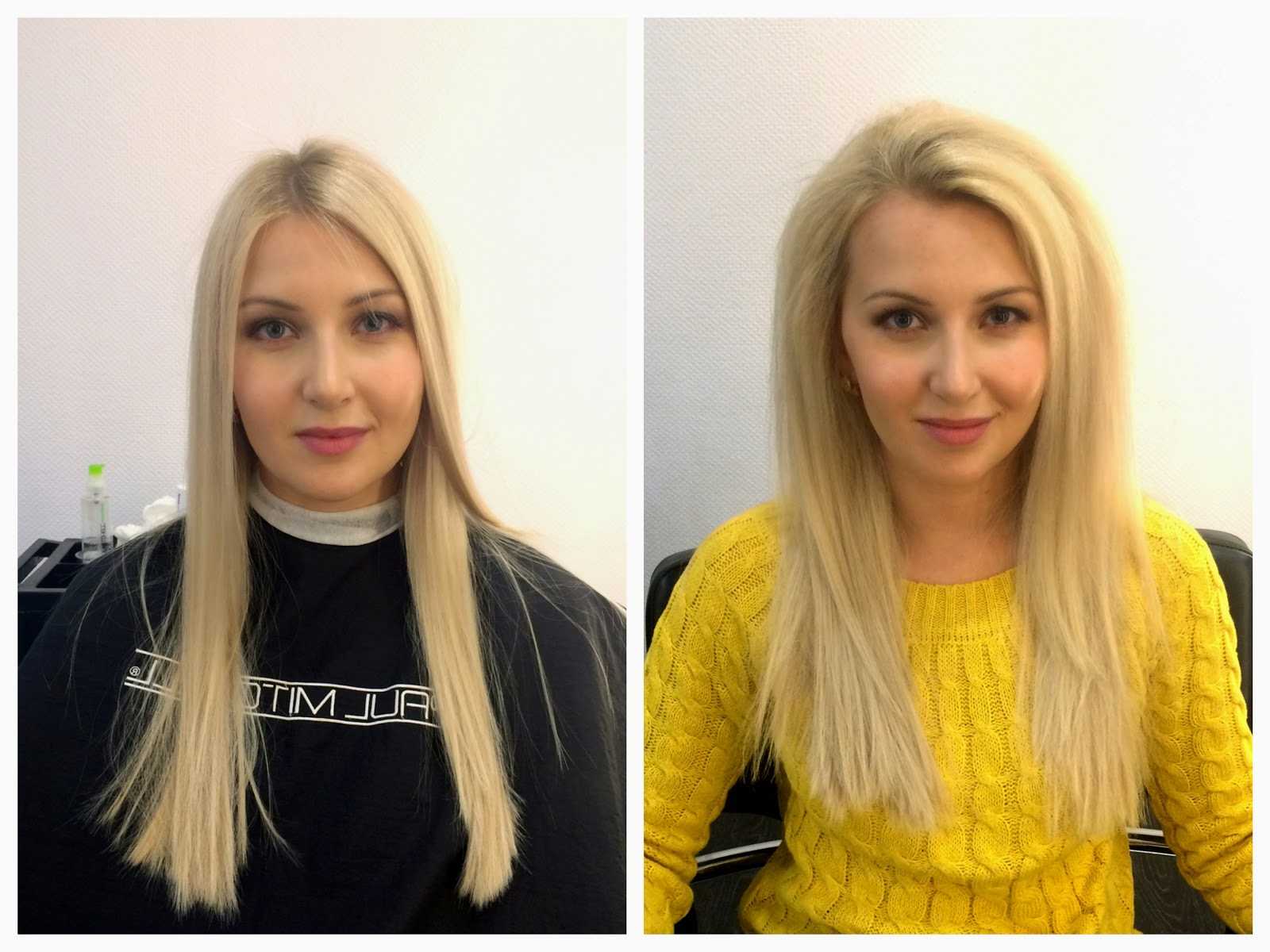 - Наращивание волос – как вариант. Если вы не хотите долго возиться с волосами, чтобы сделать их пышными, обратитесь к профессионалу и он нарастит вам волосы, за счет которых прическа будет казаться объемной.
