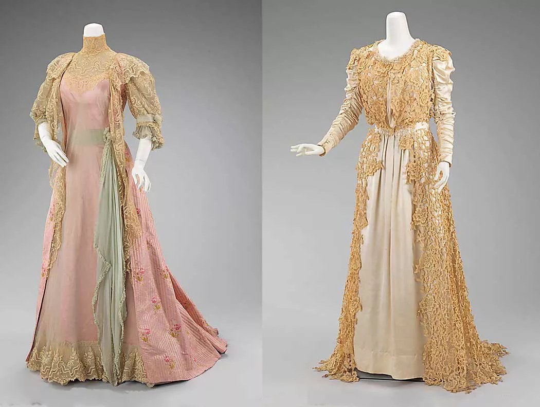 К 1910 г. такие платья стали претерпевать изменения под влиянием работ Поля Пуаре, чьи атласные и шелковые наряды, навеянные восточными мотивами, стали очень популярны среди элиты. Большим хитом 1910 г. в Лондоне стали дамские шаровары в качестве костюмированного вечернего наряда!