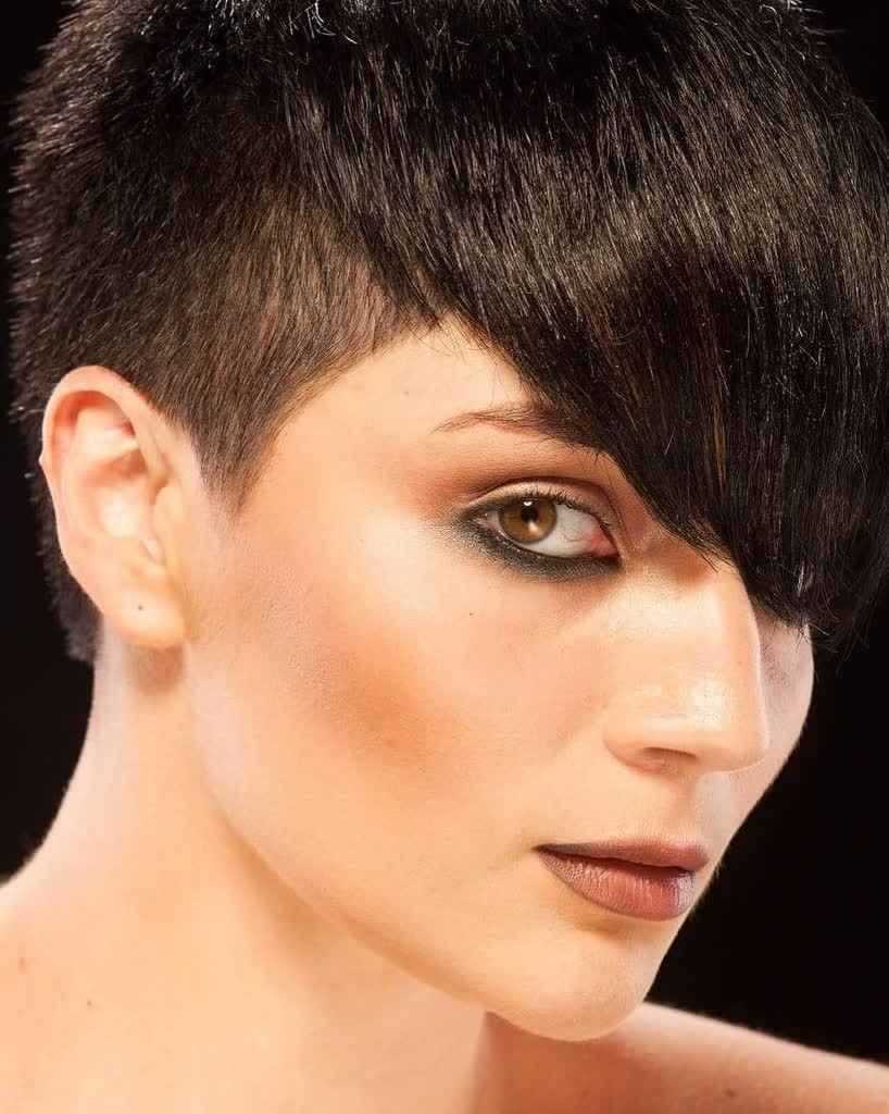 Ультракороткая стрижка, требующая укладки, которая всегда будет выделять девушку из толпы. Особых рекомендаций, кому прическа подойдет, нет, стоит лишь определиться с длиной волос на затылке. Но стилисты рекомендуют стрижку дамам более старшего возраста и обладательницам выдающихся форм.