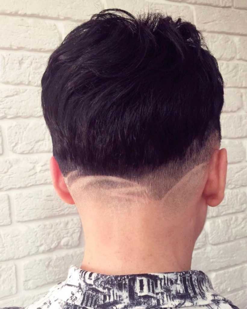- стрижки на основе выбритых висков и причудливых рисунков ― вызывающий, трендовый, неотразимый вариант для уверенных, немного дерзких парней подростков.