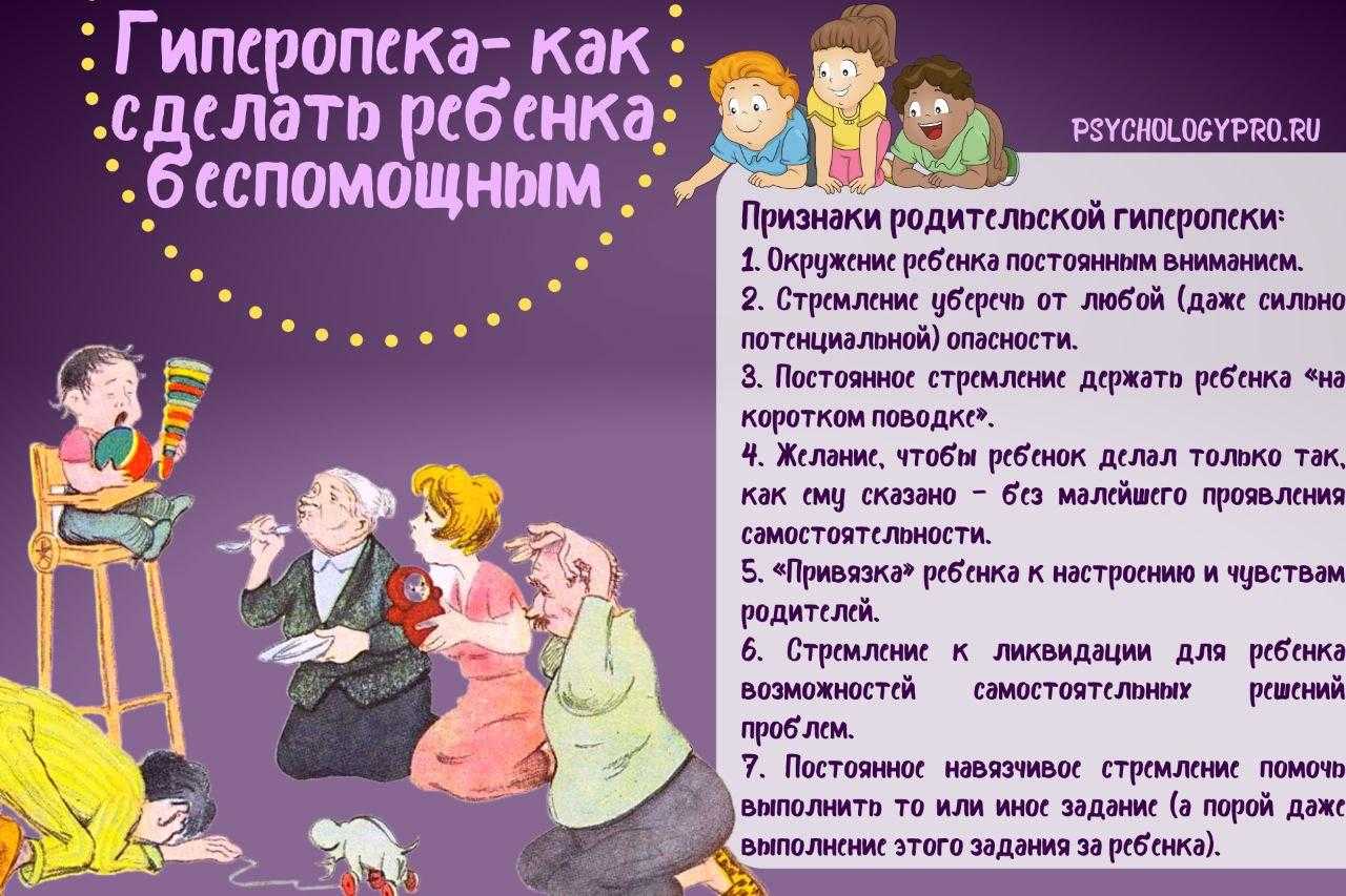 - навязывание помощи, например, родитель делает за ребенка все уроки или вмешивается в его отношения со сверстниками в конфликтных ситуациях.