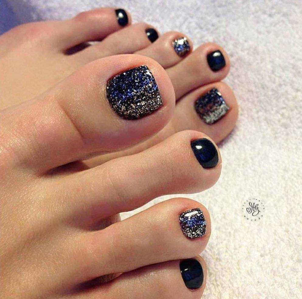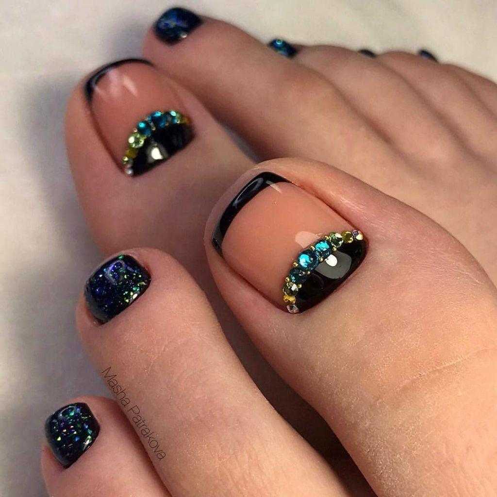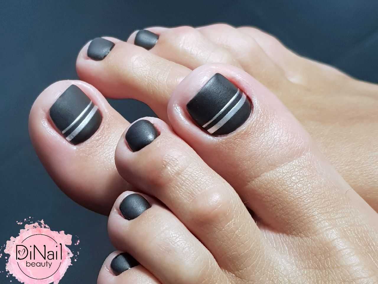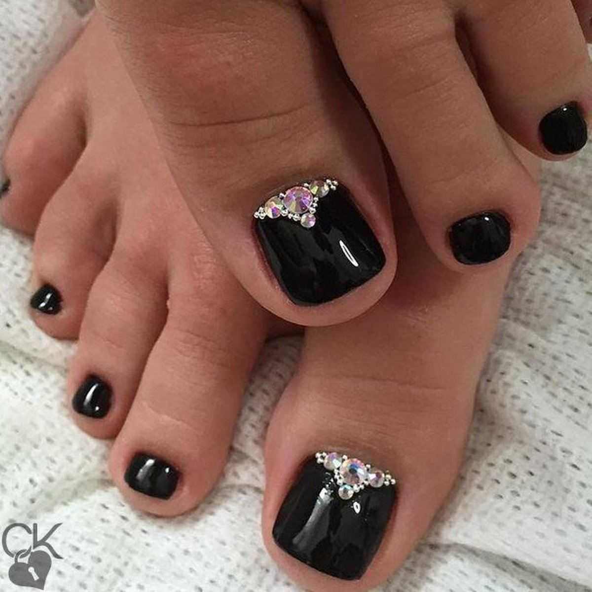 Не стоит размещать на ногтях слишком много дизайна. Так он будет выглядеть дешево и нелепо. Выполните лаконичный дизайн на большом пальце ноги, а остальные ноготки покройте однотонным черным гель-лаком.