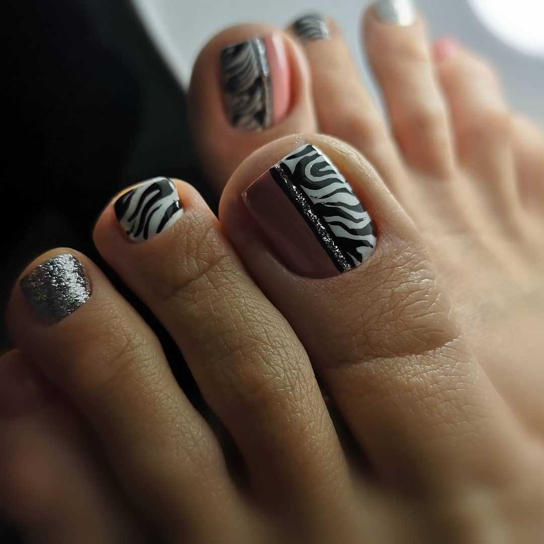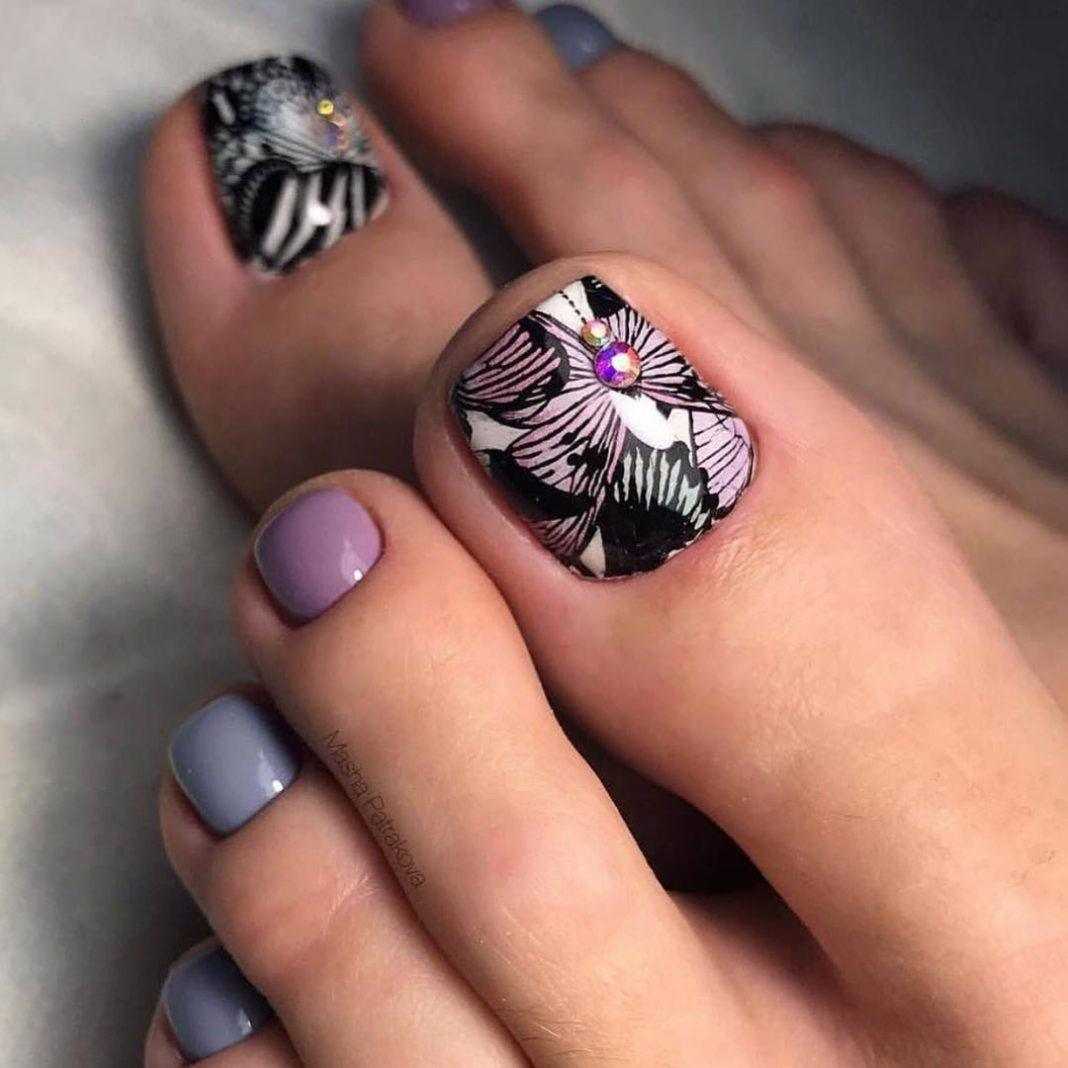 Несмотря на небольшое пространство ногтевых пластин, использовать дизайн в педикюре все же можно. При этом стоит учитывать ширину ногтей, объем самого узора и выбираемые оттенки.