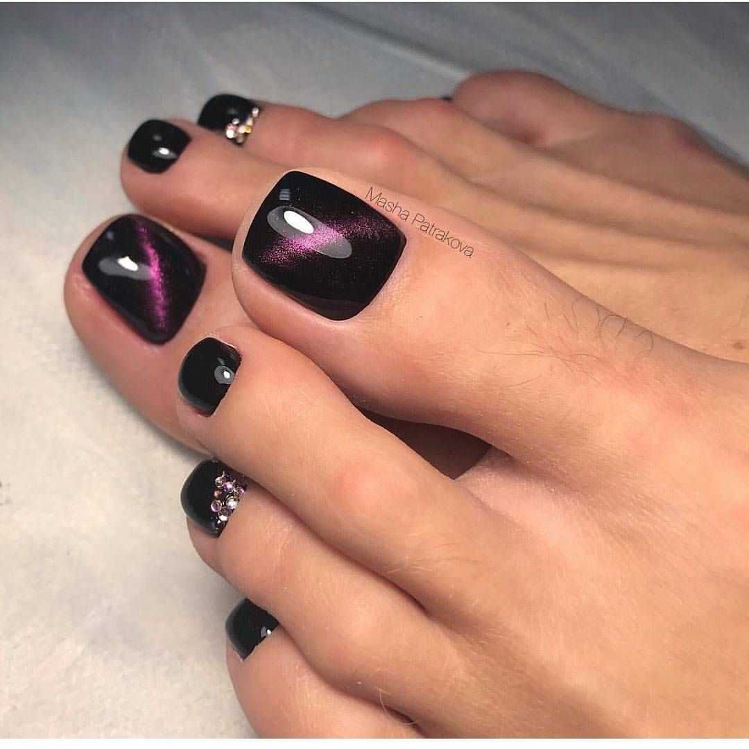 Черный педикюр – классическое решение для женщин любого возраста. Он выглядит строго и лаконично, сочетается со многими оттенками и декором. Черный дизайн ногтей можно использовать как летом, так и зимой и в каждом сезоне он будет выглядеть уместно и красиво.