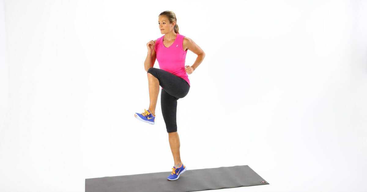- Бег на месте – станьте на пол, начинайте бежать, поднимая колени максимально высоко.