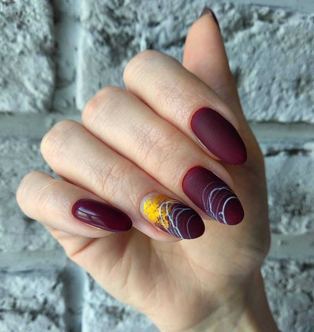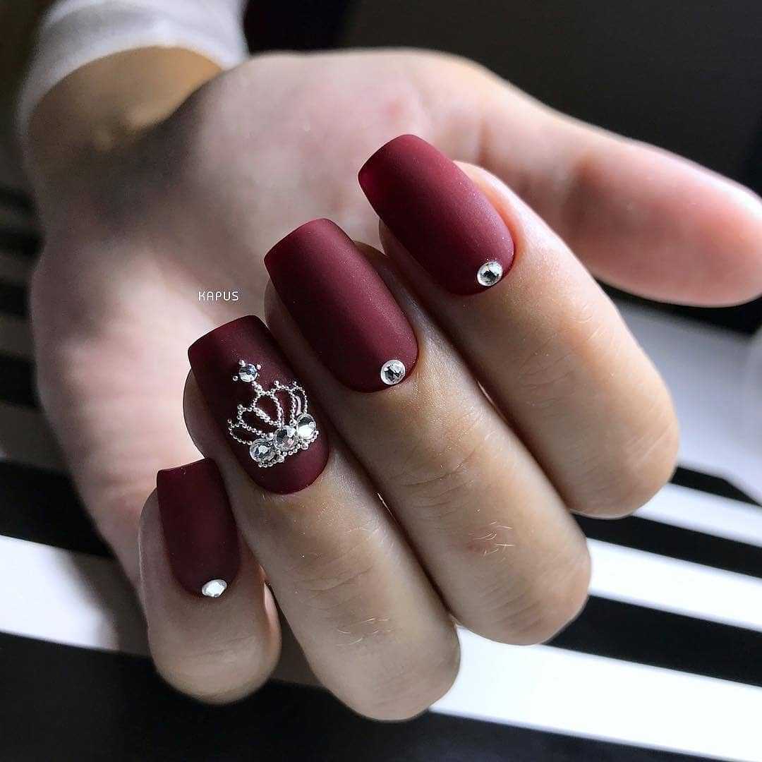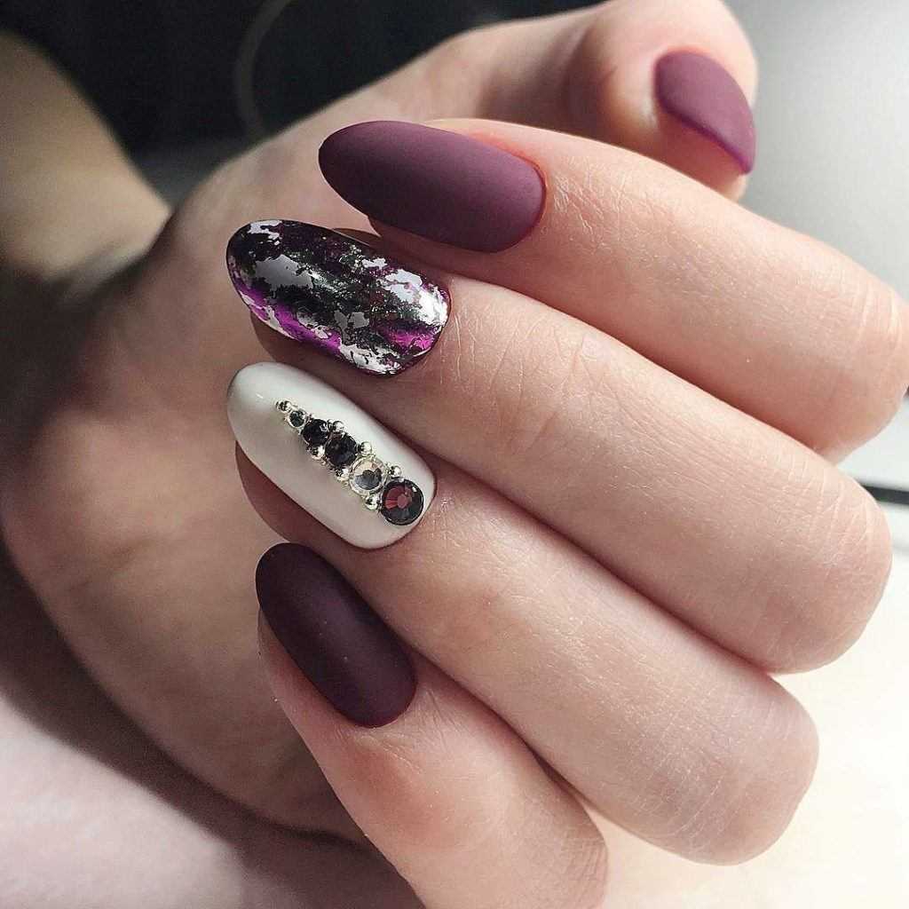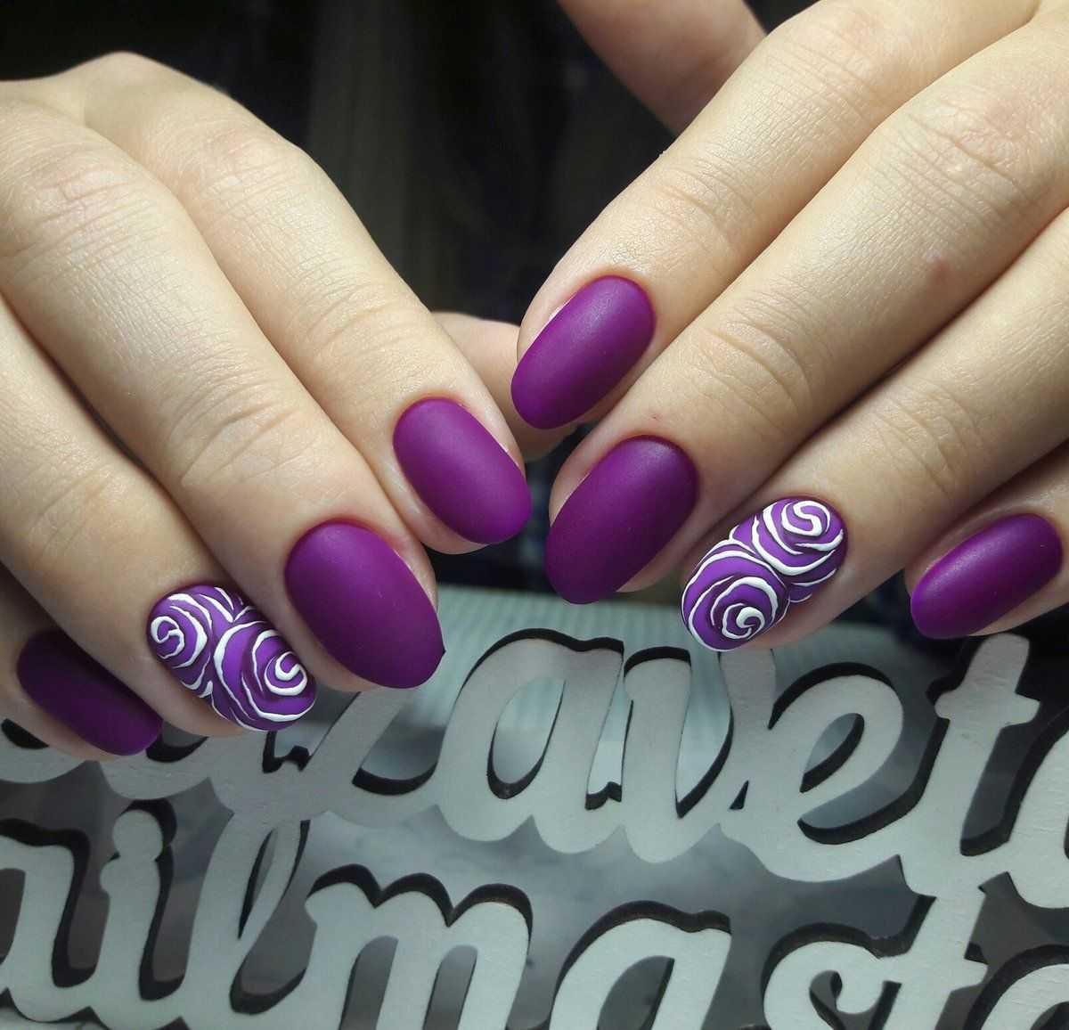 Матовый дизайн самый универсальный из всех. С таким можно показаться в офисе и на празднике. Ничего лишнего, только стиль. Но есть у такого варианта и свой недостаток – матовое покрытие хорошо подчеркивает все недостатки поверхности. Чтобы избежать этого, перед покрытием, ногтевую пластину нужно хорошо выровнять.