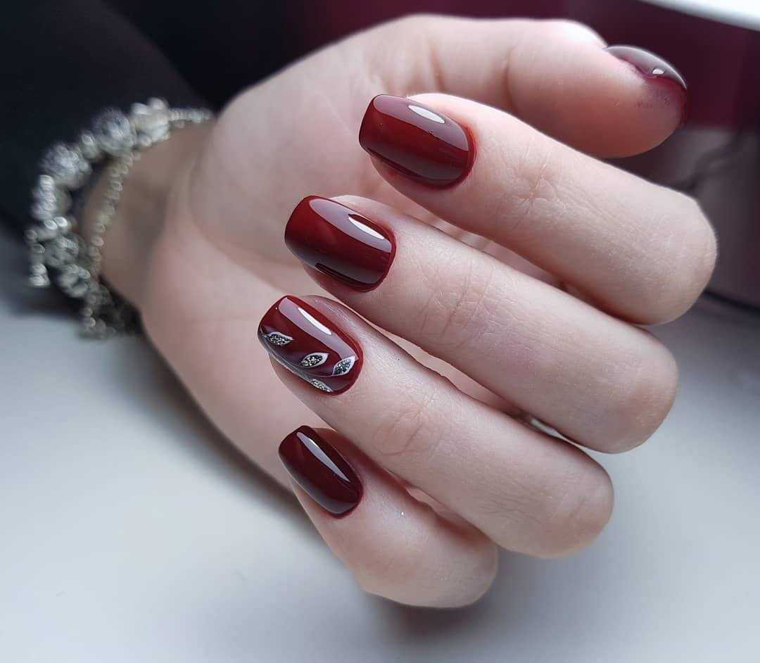 Для женщин постарше лучше ограничиться однотонным маникюром без сложного и броского дизайна. Чем лаконичнее и проще будет выглядеть маникюр, тем лучше. Если вы хотите, чтобы праздничный маникюр выглядел торжественно и благородно, добавьте в него золотой декор. Это исключительно праздничный цвет, который внесет в весь образ нотки шика и элегантности.