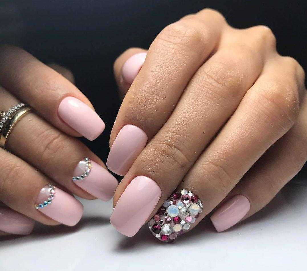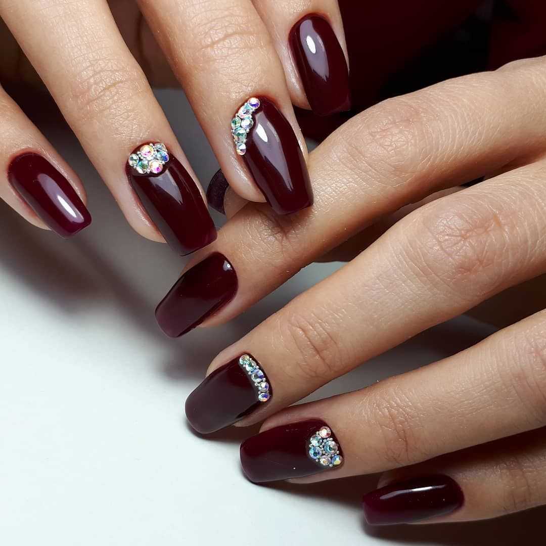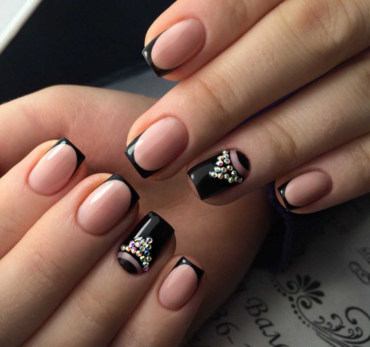 Море блесток, конечно же, станет идеальным вариантом для праздничного маникюра. Стразы могут быть совершенно разного размера и разного оттенка. Выложить их можно в интересную композицию, или же рассыпать в хаотичном порядке.