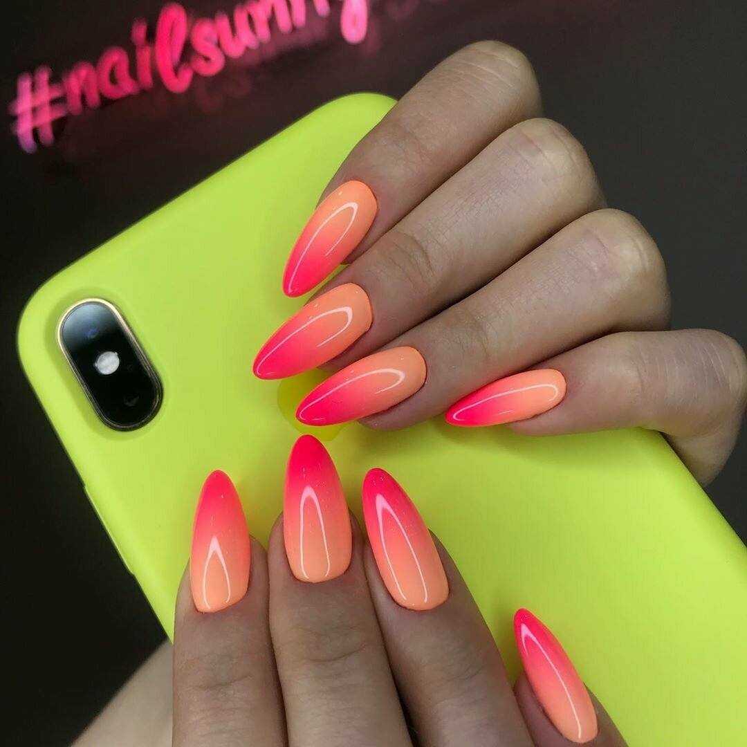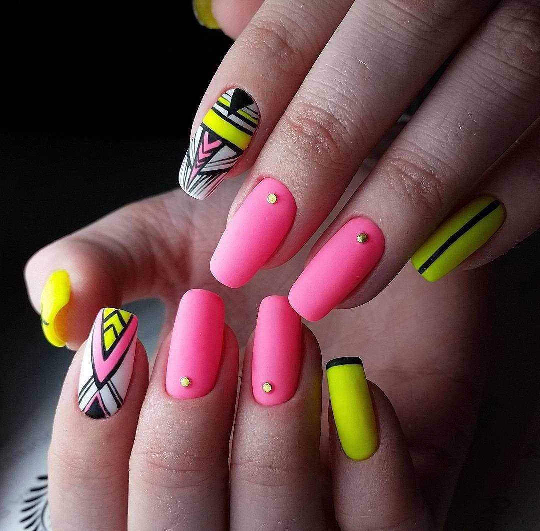 Теплые, солнечные дни наполняют энергией и хорошим настроением. Хочется сделать яркий маникюр, быть в центе внимания, съездить на пляж, для этого и ждешь лето. В моде разноцветные неоновые ногти, они могут быть глянцевыми или матовыми, или в стиле «разные руки». Комбинирование оттенков подбирается под цвет купальника, настроения, любых других пожеланий девушки. Форма ногтей, длинна должна быть в первую очередь удобна для своей обладательницы, и конечно же нравится ей.
