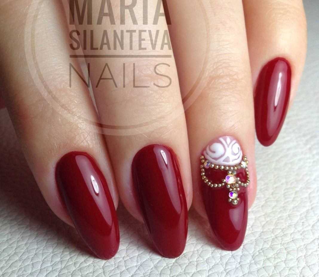 Выбирая подходящий вариант, обратите внимание на декор, чтобы придать маникюру законченный праздничный вид. Выбор можно сделать в пользу элементов с глянцевым эффектом, вариантов акцента или в сочетании с отделкой