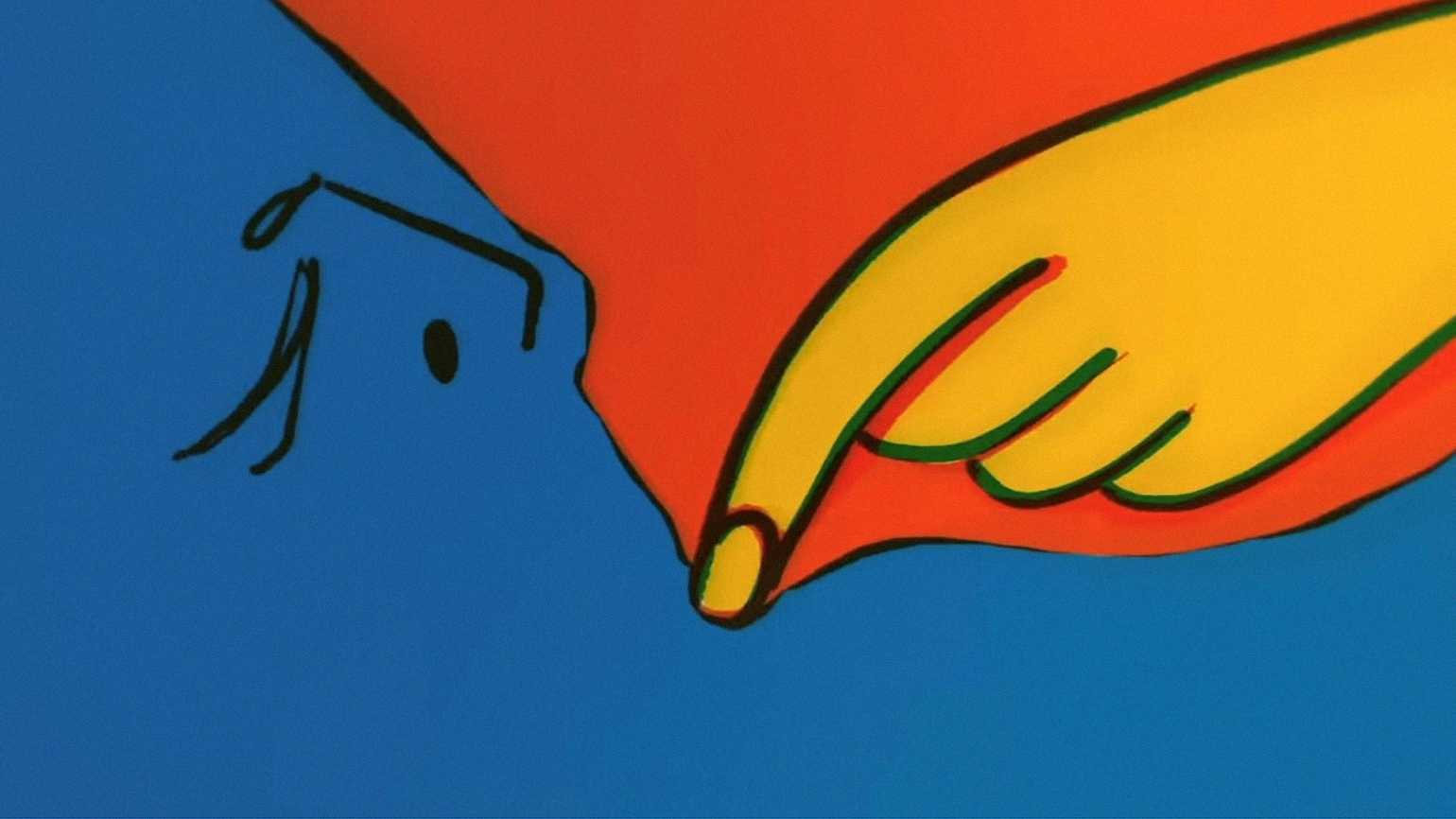 На анимацию. Фигуры в клипе двигаются, как живые: летящие кометы превращаются в сушу, горы расползаются по сторонам, а нарисованные люди кружатся в танце. Движение преобразует мечущиеся фигуры в единую смысловую форму.
