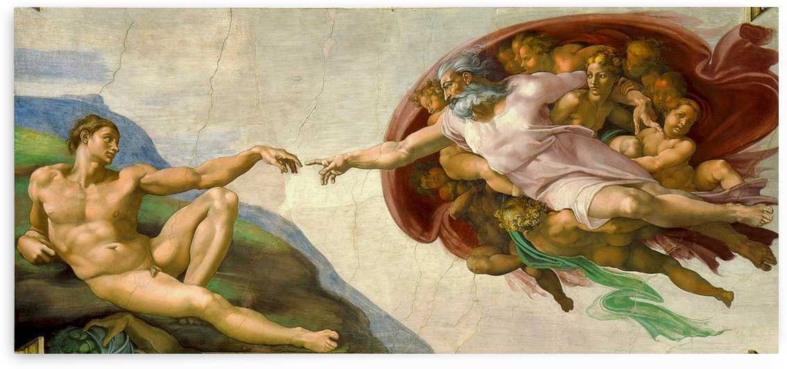 Однако они всегда будут рядом, возможно даже взаимно влияя друг на друга. Мы видим, что Бог, окруженный ангелами, протягивает руку Адаму, но их пальцы не соприкасаются.