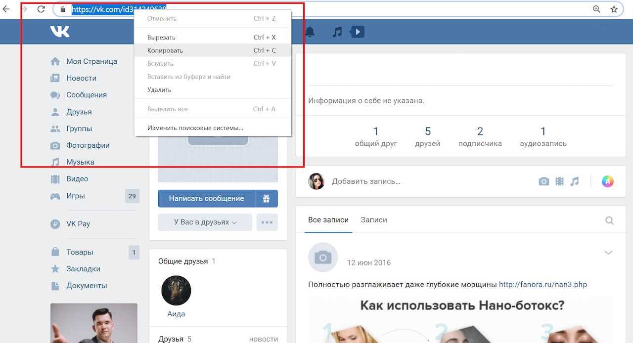 Скопируйте ссылку профиля человека.