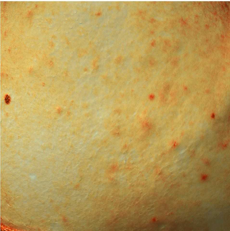 - Прогрессирующая пигментная пурпура – болезнь, которая ведет к обесцвечиванию кожи. Коричневые пятна располагаются по телу неравномерно, их структура – ровная, гладкая.