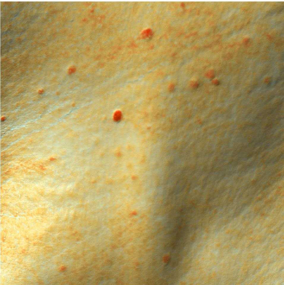 По мере старения человека наблюдаются утолщение, пожелтение кожи, ее микротекстура становится более грубой, а на поверхности появляются лентигиозные высыпания – характерная крапчатая пигментация. Начиная с 30-летнего возраста, количество меланоцитов в коже каждые 10 лет падает на 6–8%, но абсолютная плотность меланоцитов в областях, постоянно подверженных солнечному излучению, оказывается вдвое больше, чем в участках, защищенных от воздействия ультрафиолета. Увеличение количества меланоцитов в УФ-облученной коже и параллельное нарушение транспортировки меланосом к кератиноцитам способствует появлению крапчатой пигментации – маркера фотостарения.