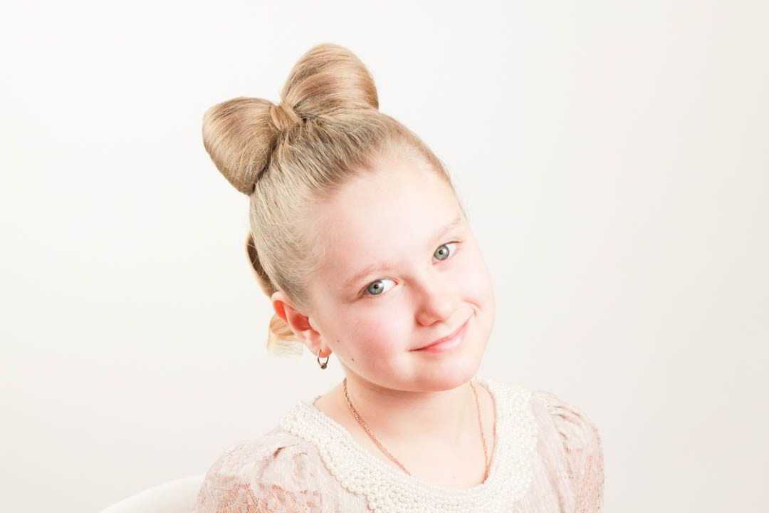 Модная прическа бант из волос для девочек в школу 2022