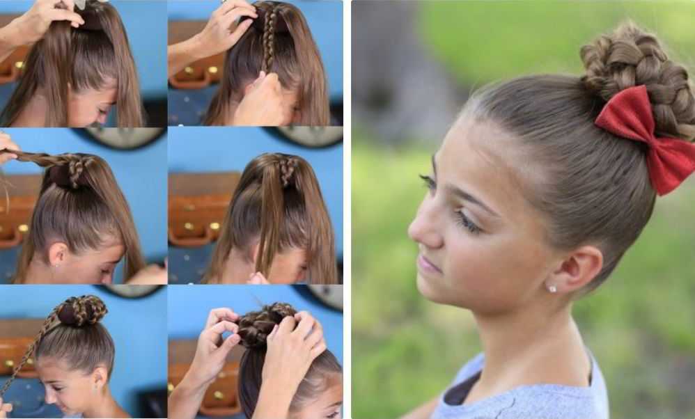 Модная прическа коса с пучком для девочек в школу 2022